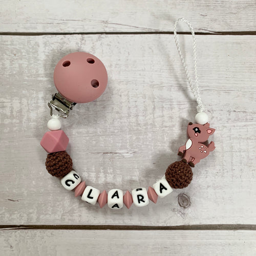Schnullerkette mit Namen Silikon Mädchen Reh